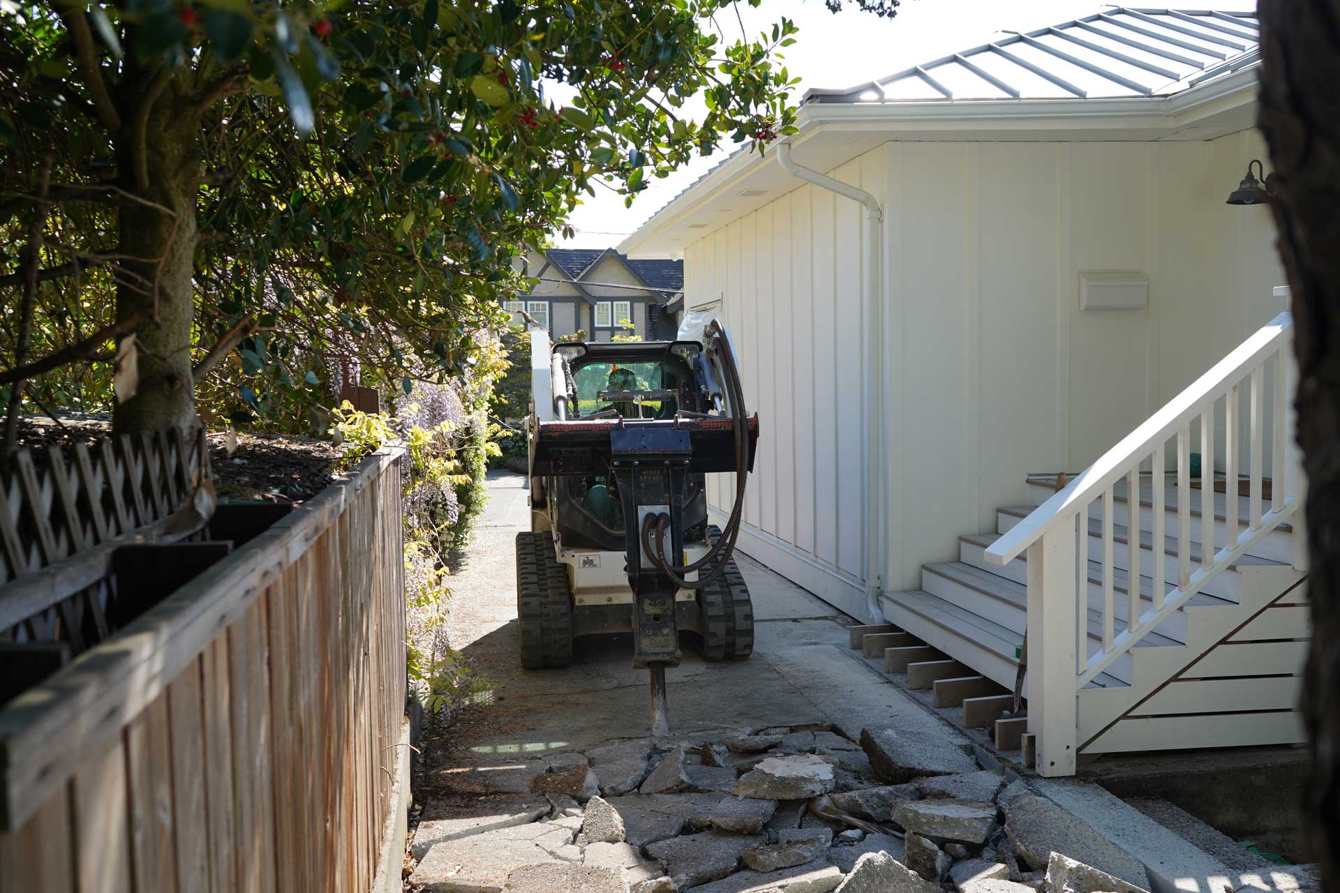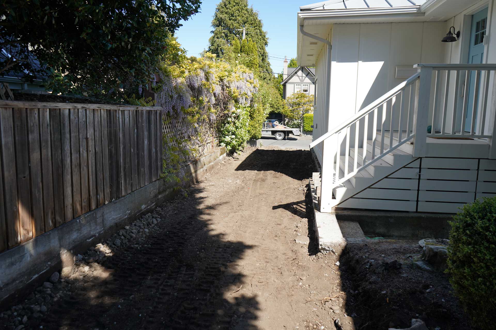 The project began with the careful removal of the existing four inch concrete driveway. Once the slab was lifted out, our team excavated an additional six to eight inches of base material. This gave us the depth needed for a more robust structural system. Proper excavation is essential in Oak Bay because soil conditions can shift from one property to another. Building a driveway with exposed aggregate requires a stable foundation that will stand up to years of weather, traffic, and seasonal change without premature cracking or settling.