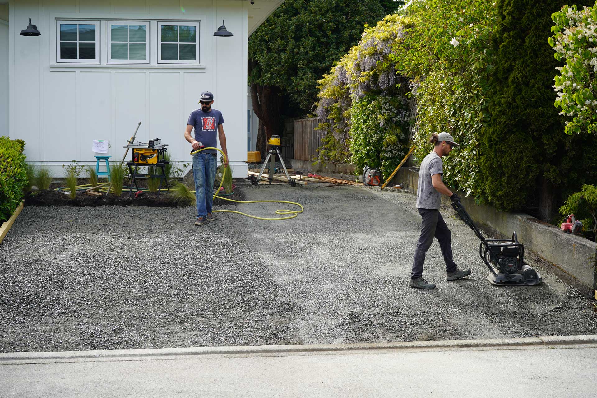 After excavation, we brought in six to eight inches of three quarter road base. This material was placed evenly across the subgrade and compacted in several passes to meet density requirements from the Oak Bay Engineering Department. Even though this work is not visible in the final product, it is one of the most important steps in the entire process. A well compacted base supports structural loads and helps keep the driveway level and dependable for many years.